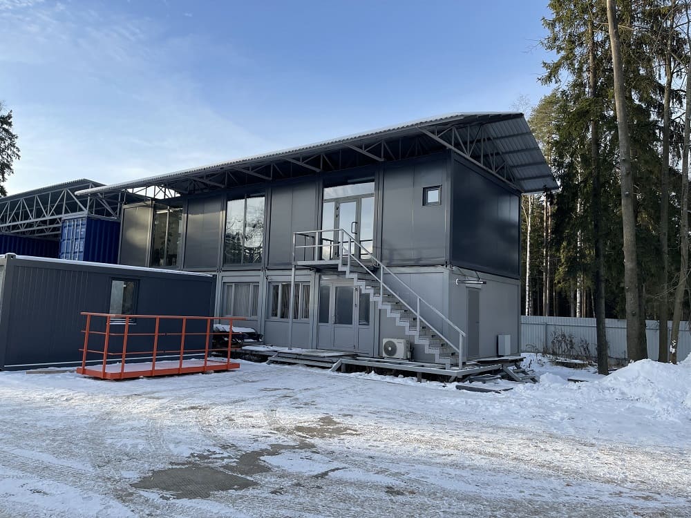 На существующий офис надстроили второй этаж, сделали интересную отделку.